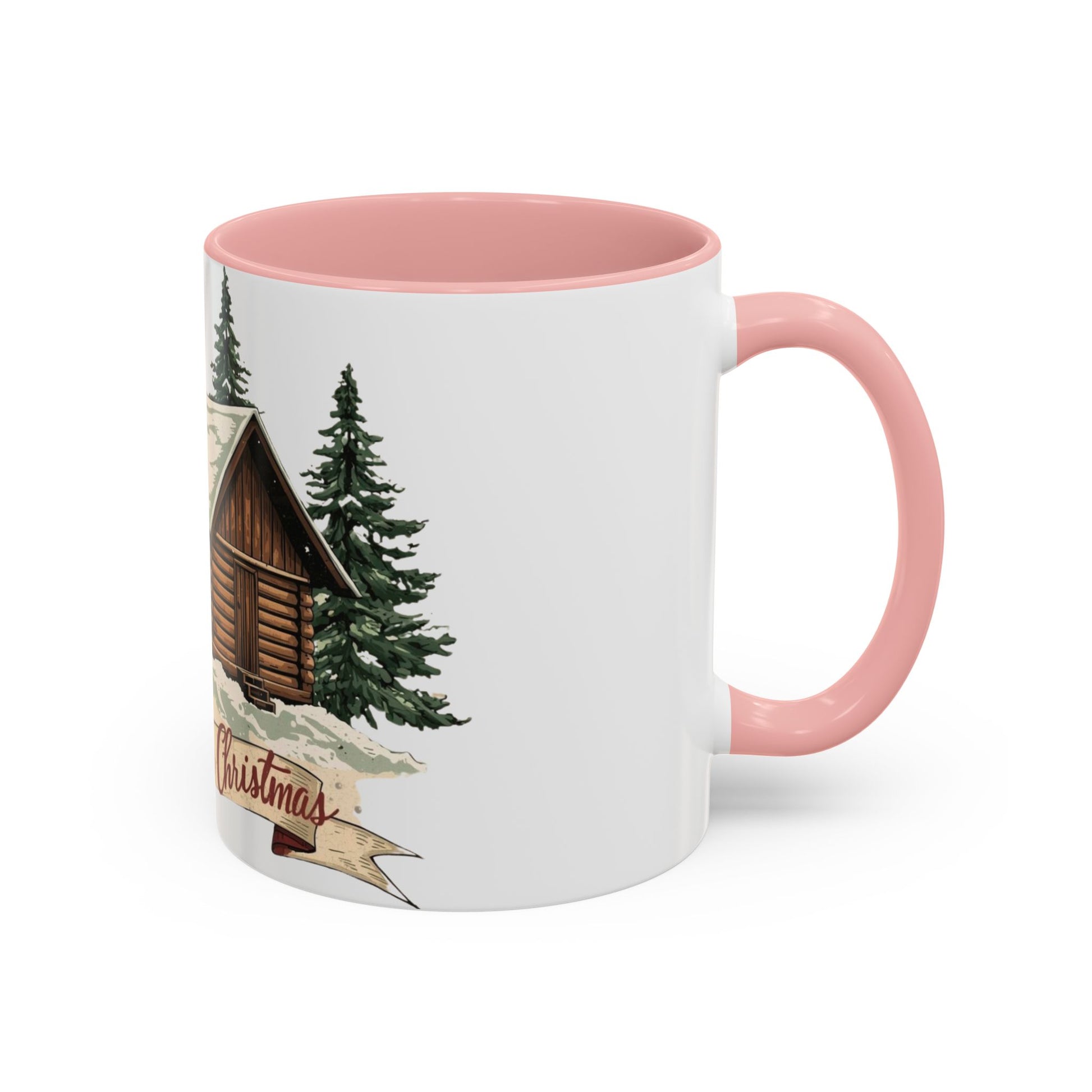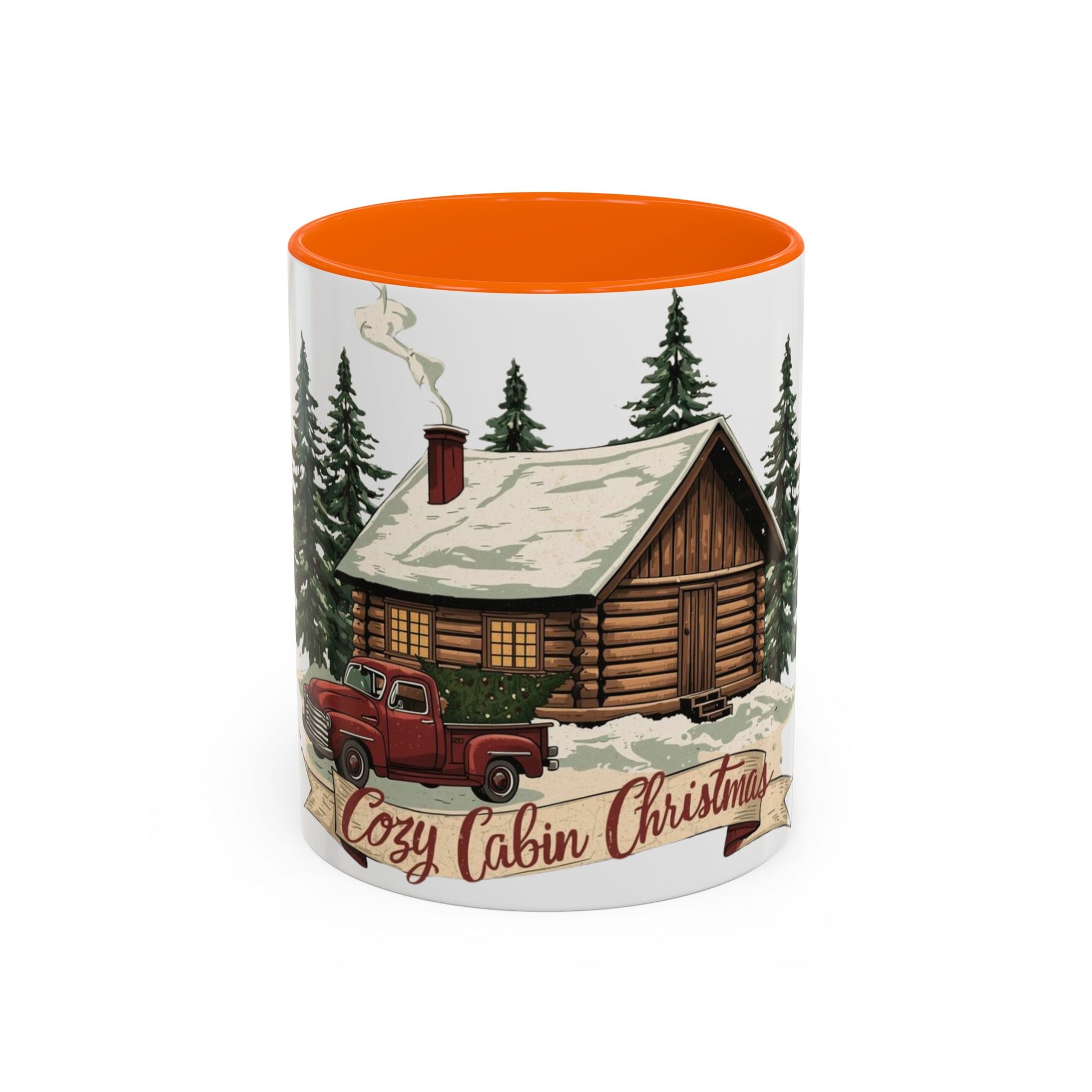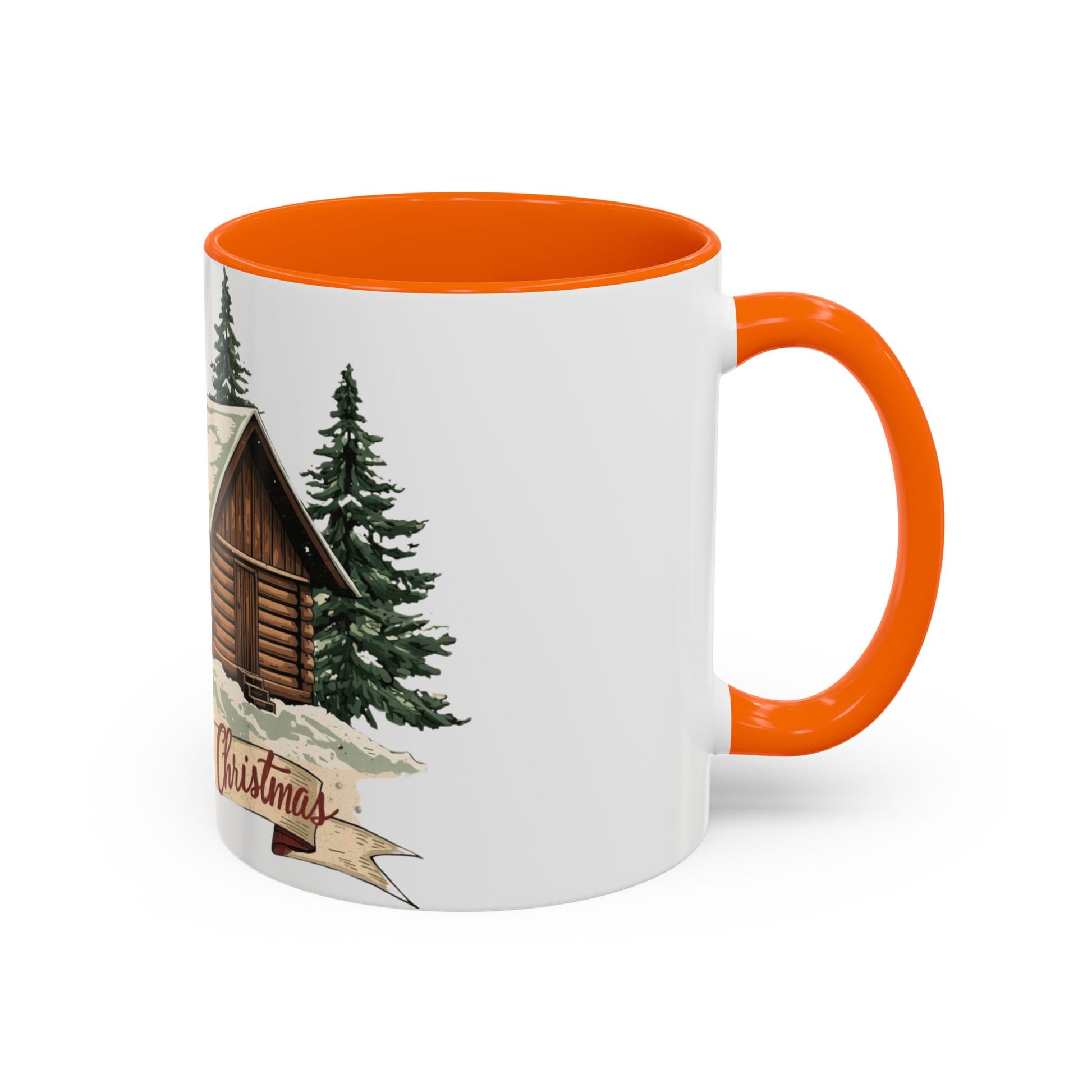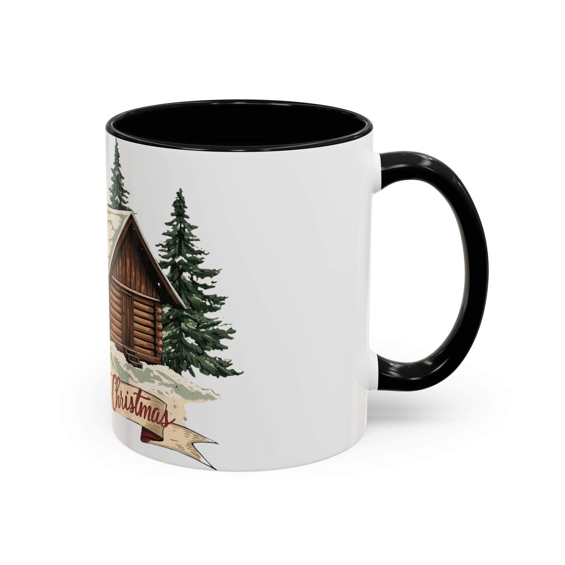 Cozy Cabin Christmas Accent Mug | Rustic Holiday Log Cabin Coffee Cup (11oz & 15oz | 8 Color Options for 11oz, 5 for 15oz)