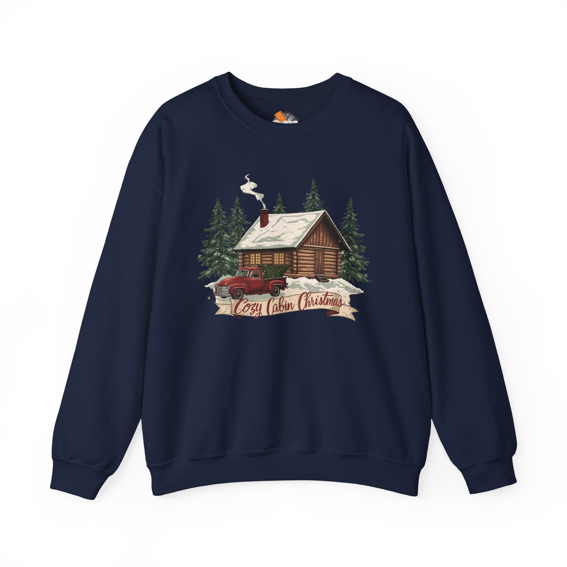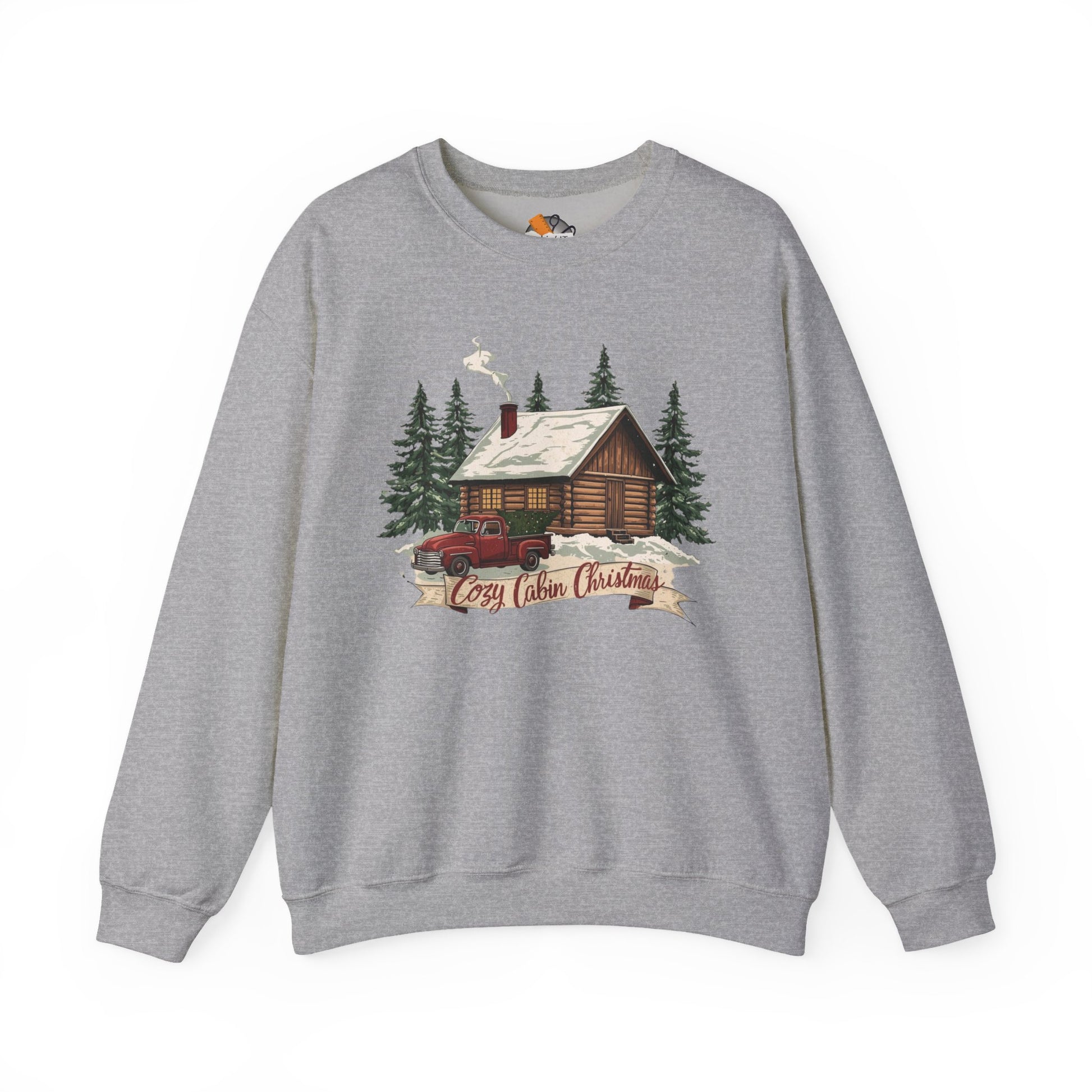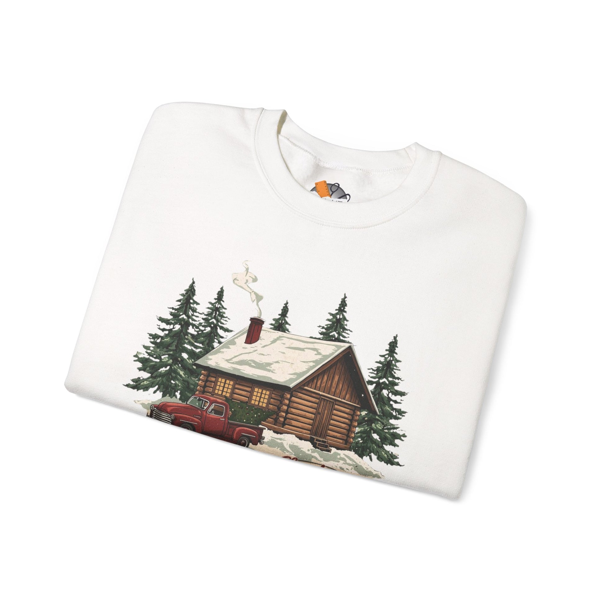 Cozy Cabin Christmas Crewneck Sweatshirt | Rustic Red Truck Holiday Sweater (9 Color Options)