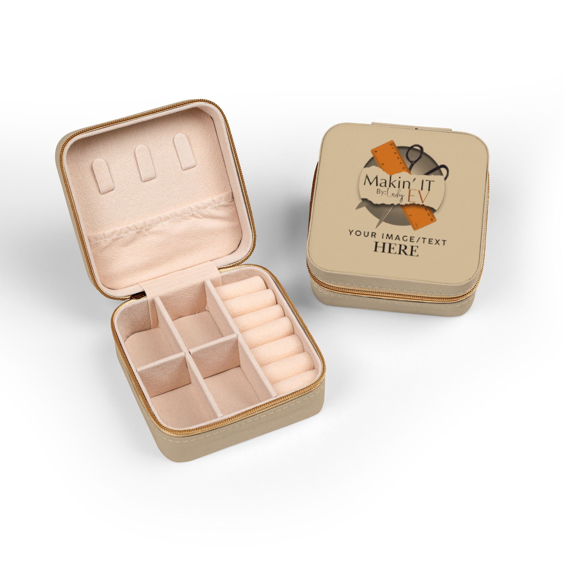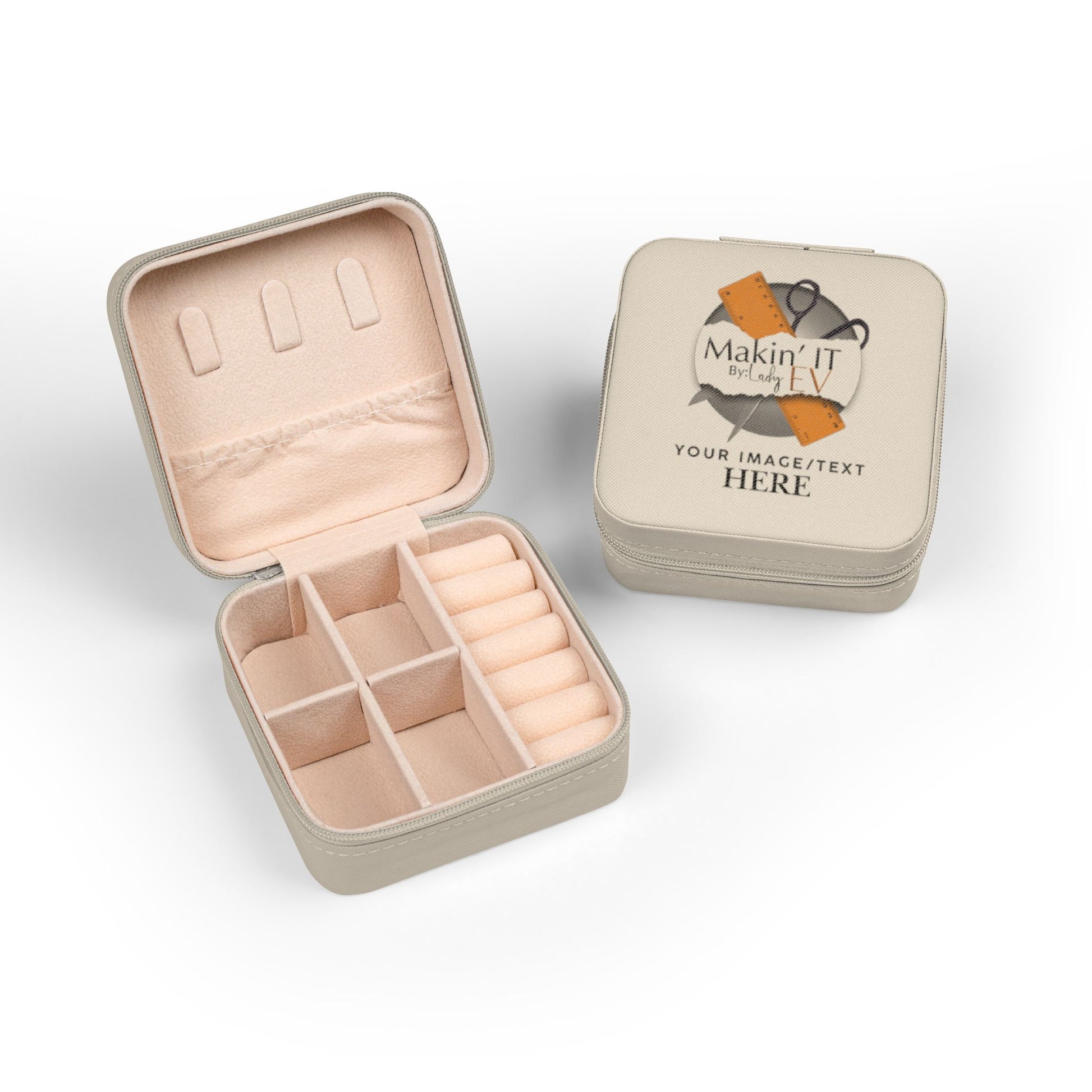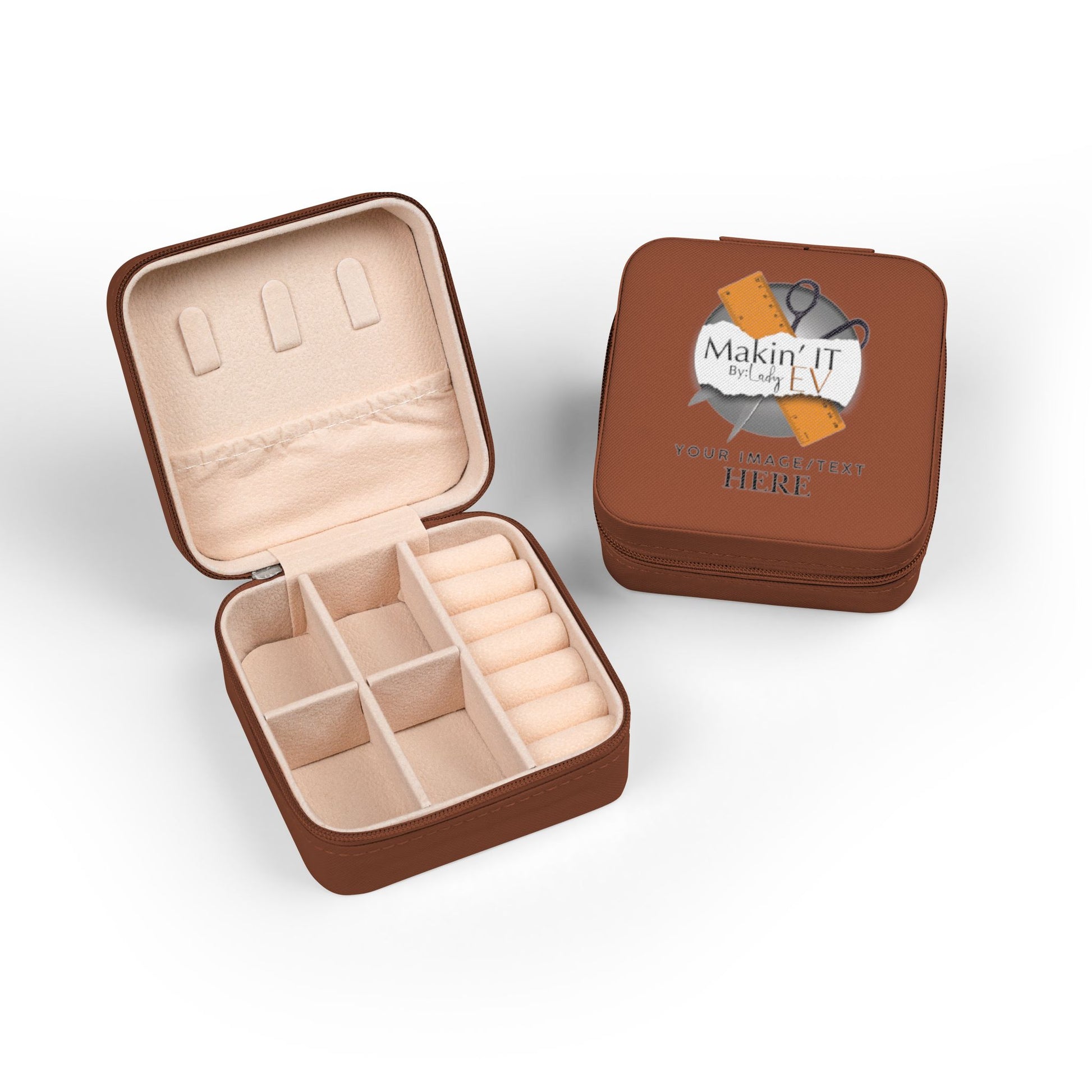 This customizable travel jewelry box keeps your favorite pieces secure while showcasing your own design on the exterior. Whether you’re adding a name, monogram, logo, or meaningful artwork, this compact case turns everyday organization into something uniquely yours.