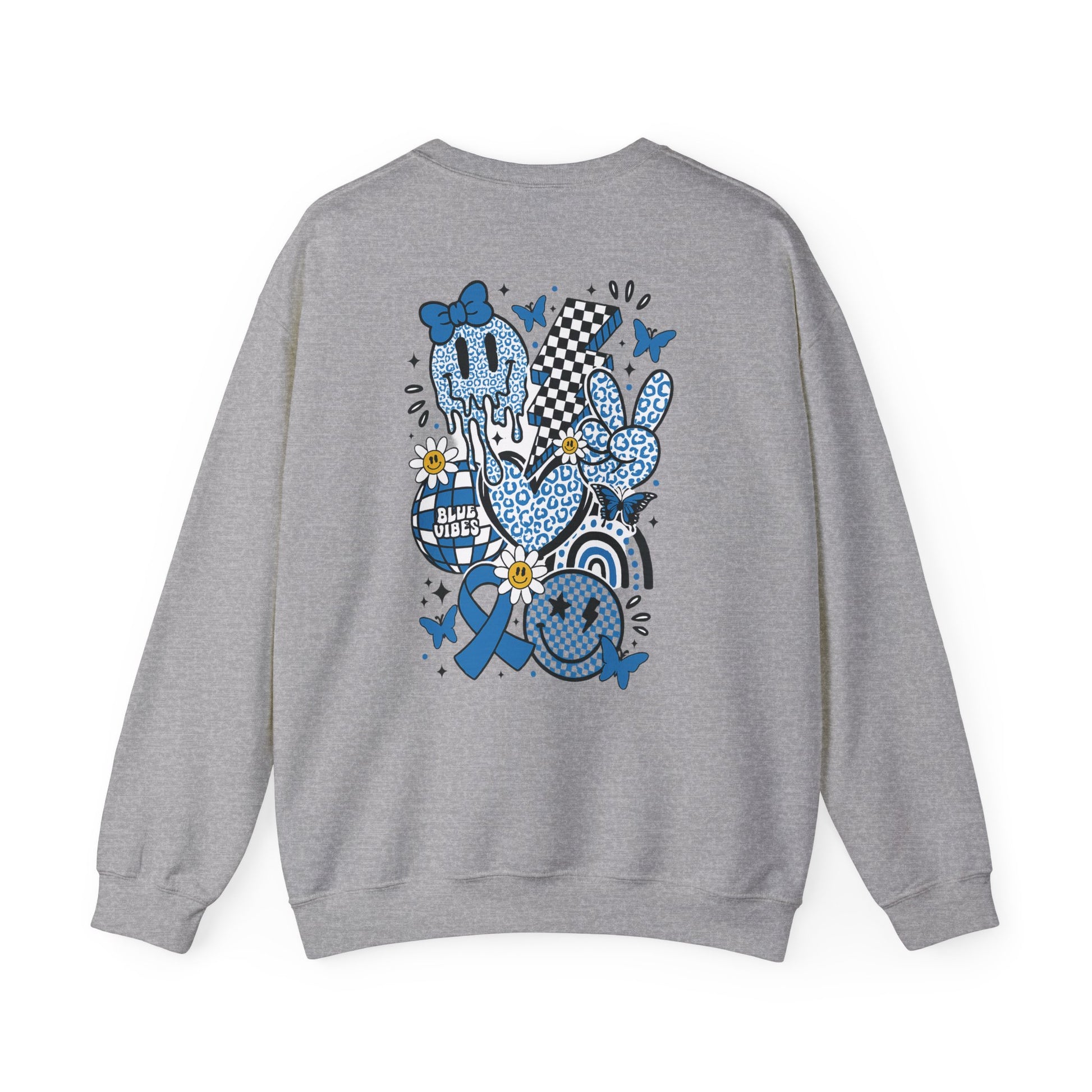 Show your support with style and purpose in this Diabetes Awareness Crewneck Sweatshirt. The front features a minimalist “Diabetes Awareness” rainbow emblem, while the back bursts with a bold graffiti-inspired design — blue ribbons, butterflies, and cheerful accents celebrating courage and community.