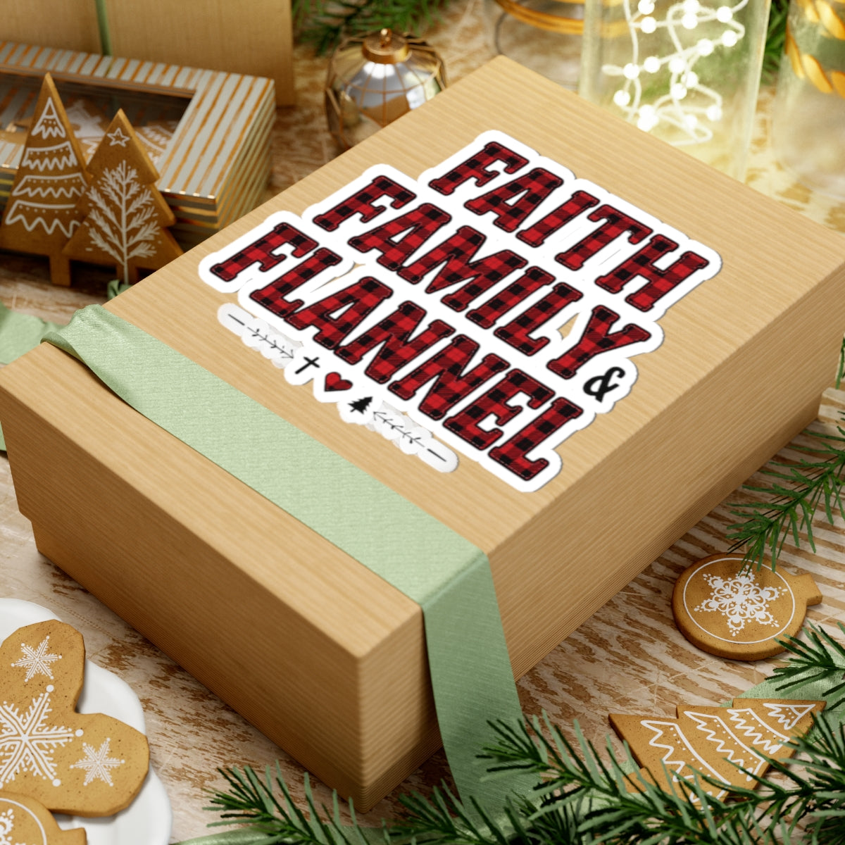 Faith, Family & Flannel Sticker | Christian Buffalo Plaid Waterproof Vinyl Sticker (4 Sizes)