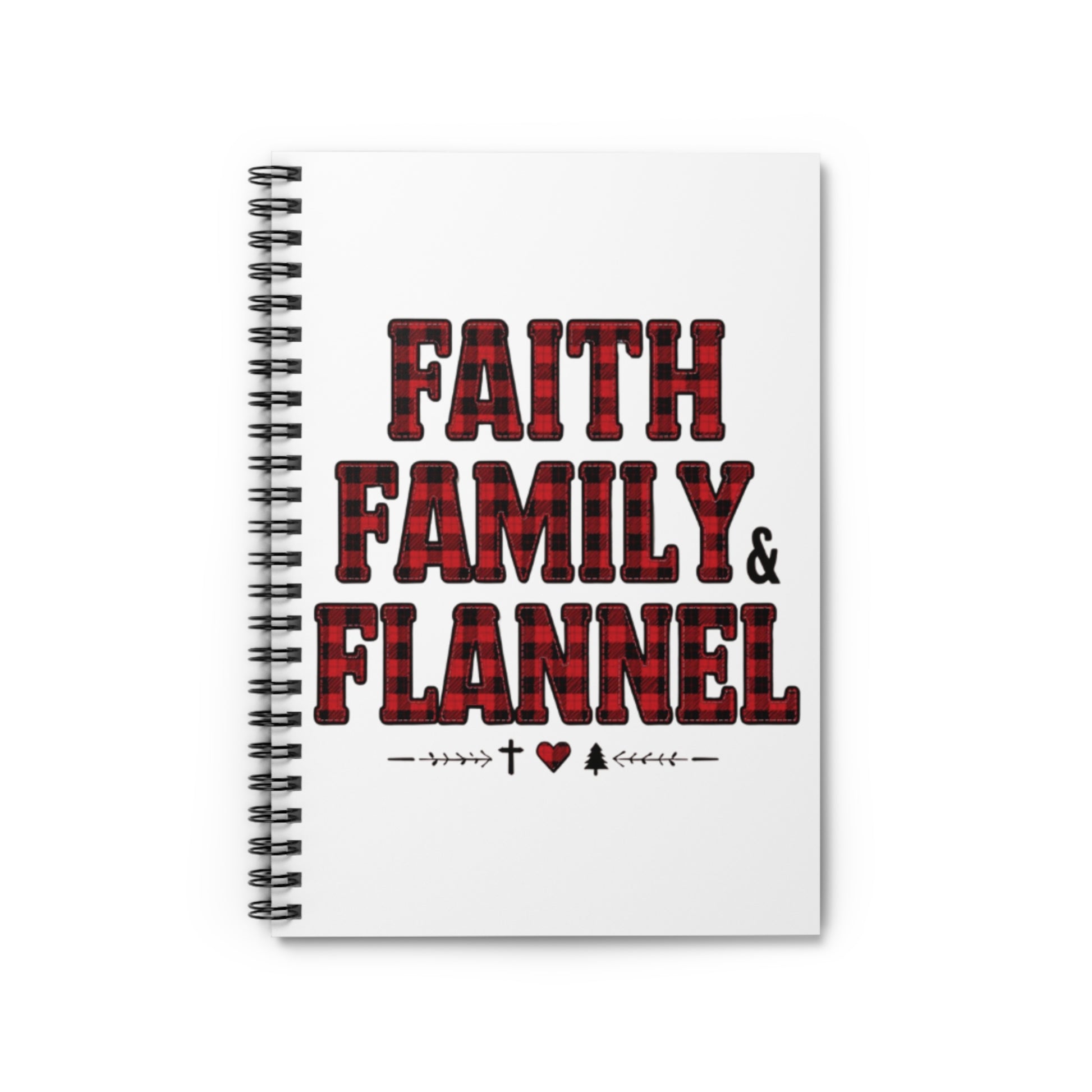 Faith, Family & Flannel Spiral Notebook | Rustic Plaid Christian Journal | Cozy Holiday Gift