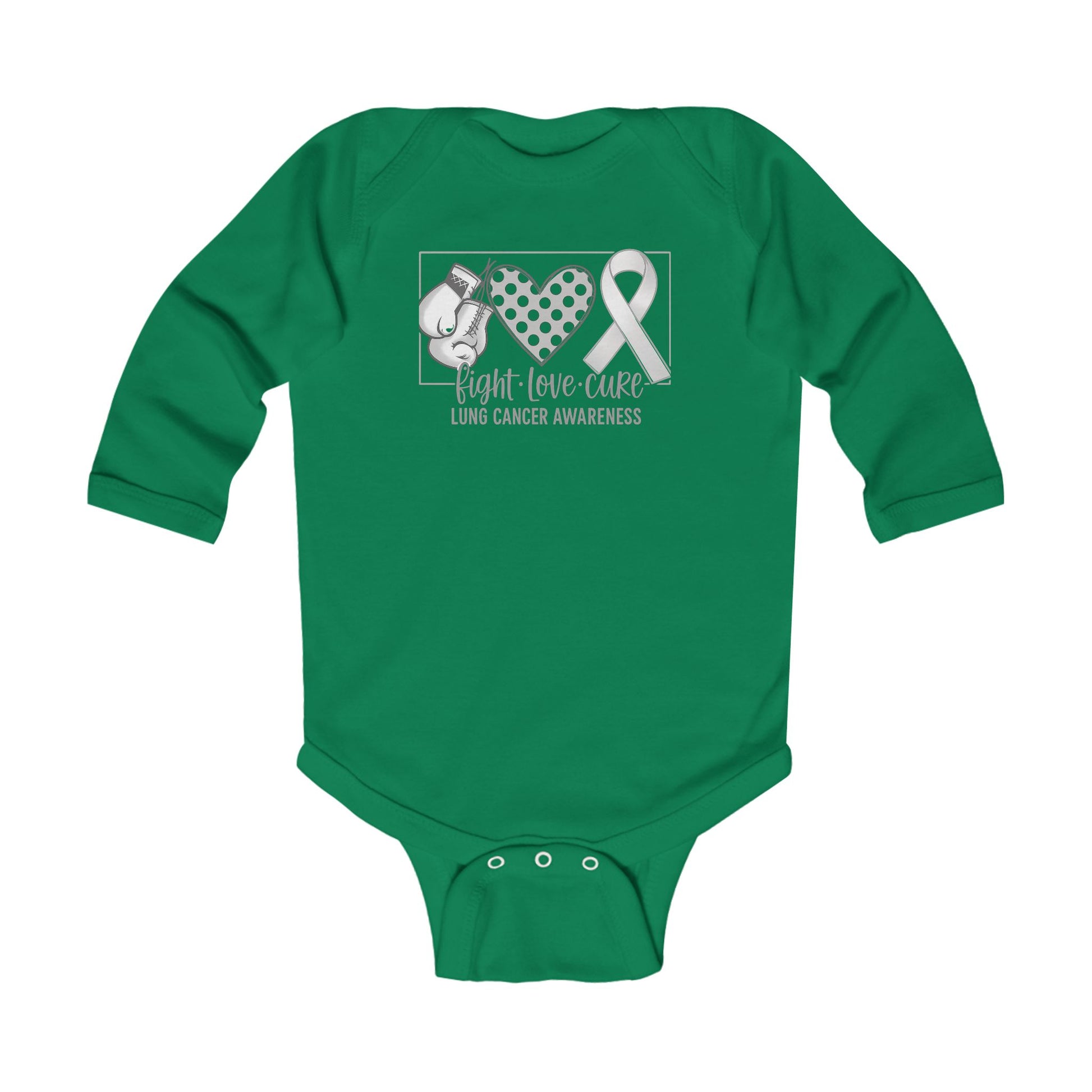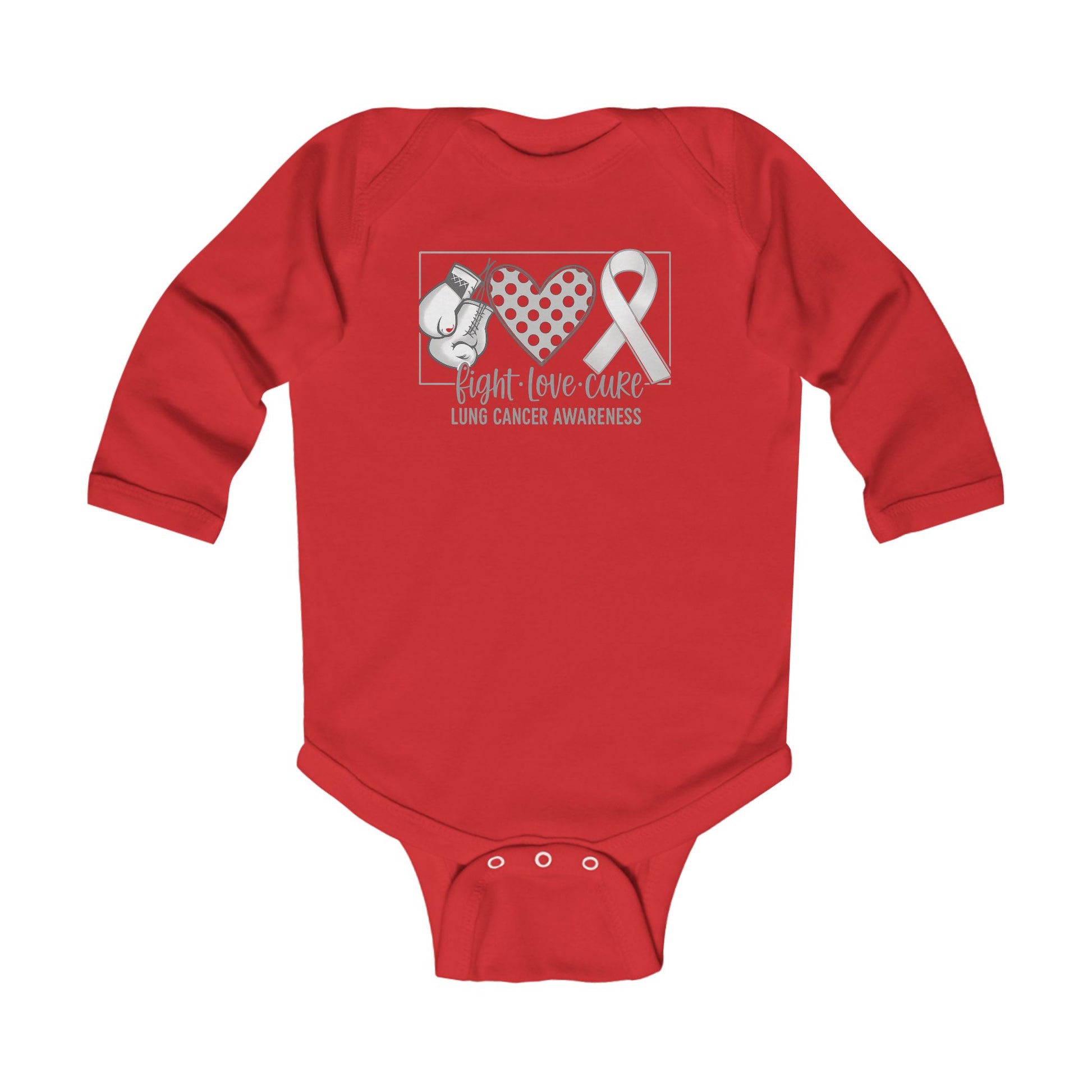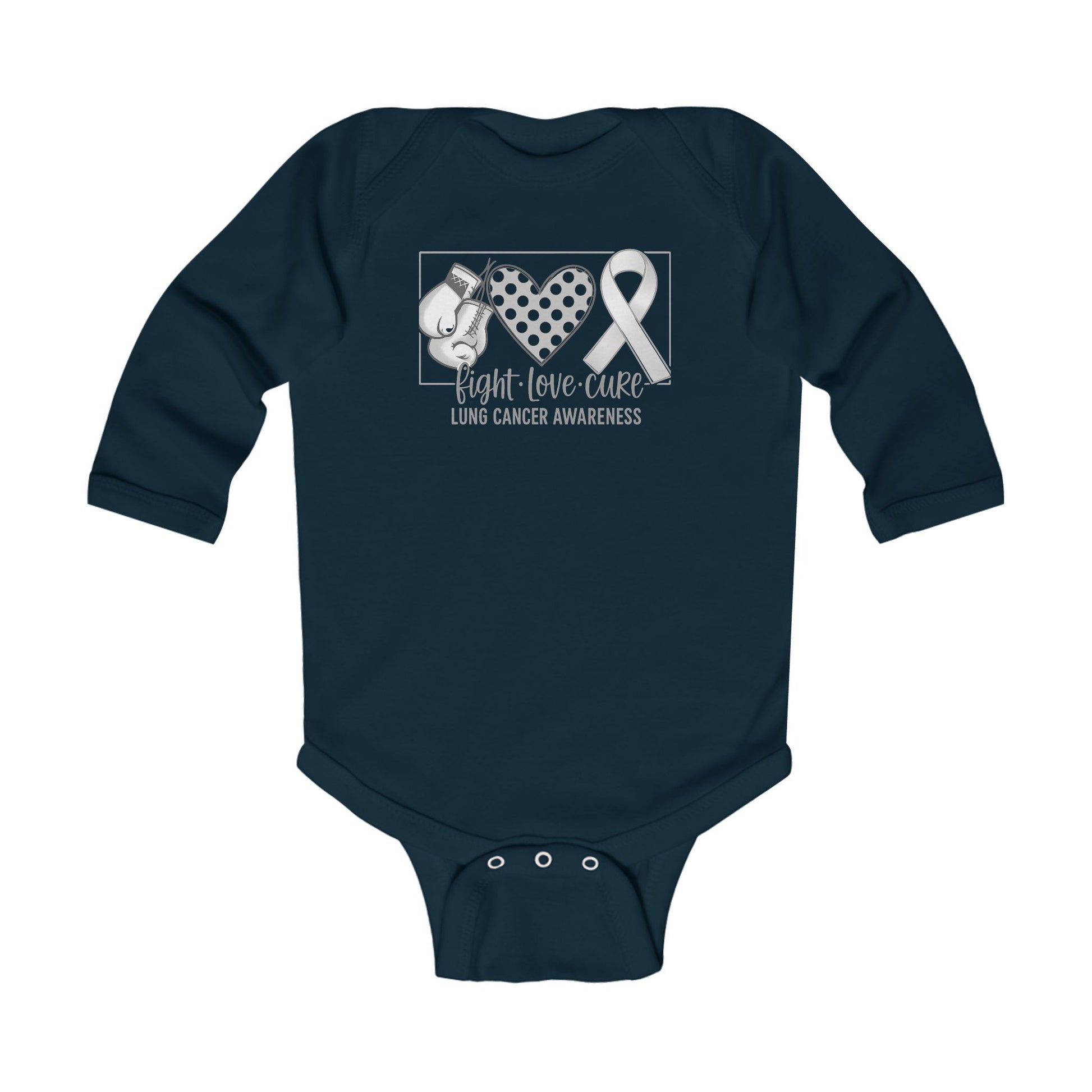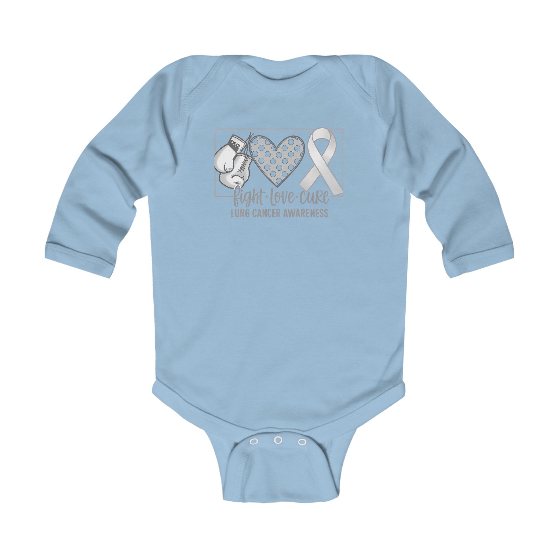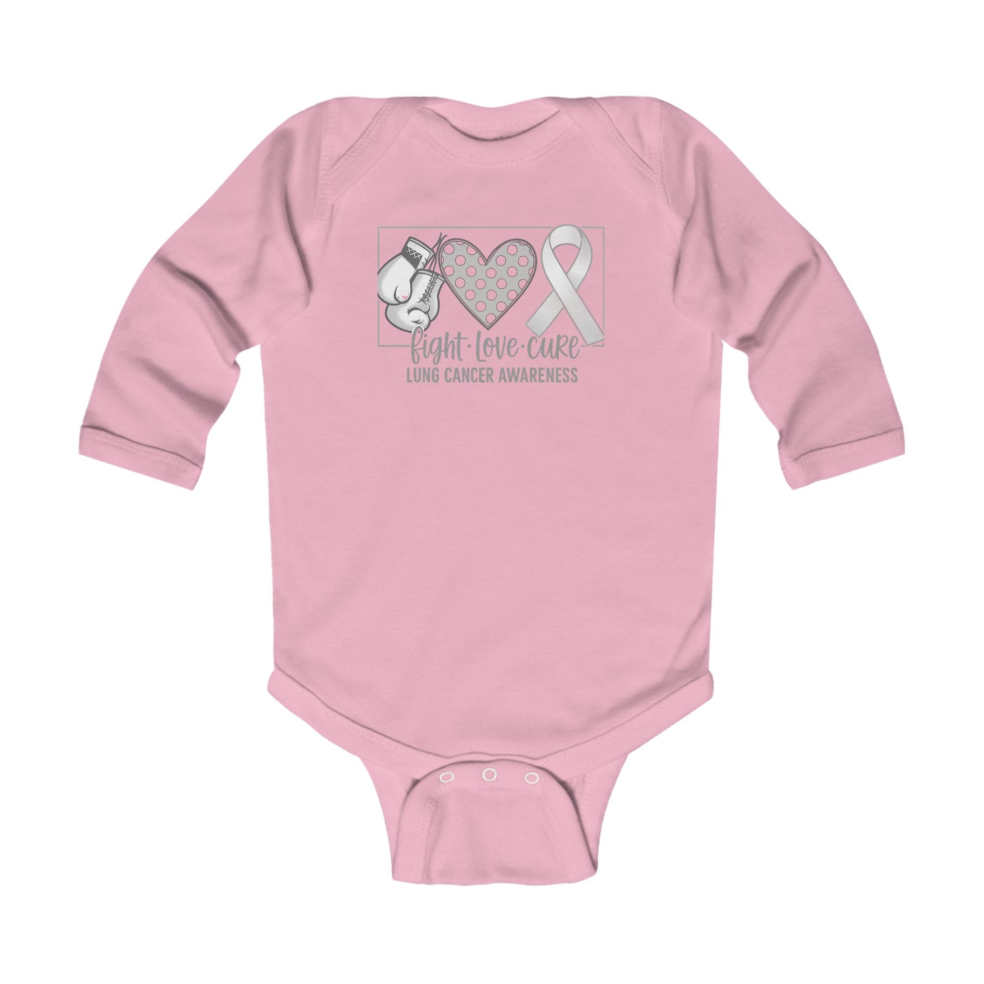Fight Love Cure Lung Cancer Awareness Infant Long Sleeve Onesie | Baby Awareness Bodysuit