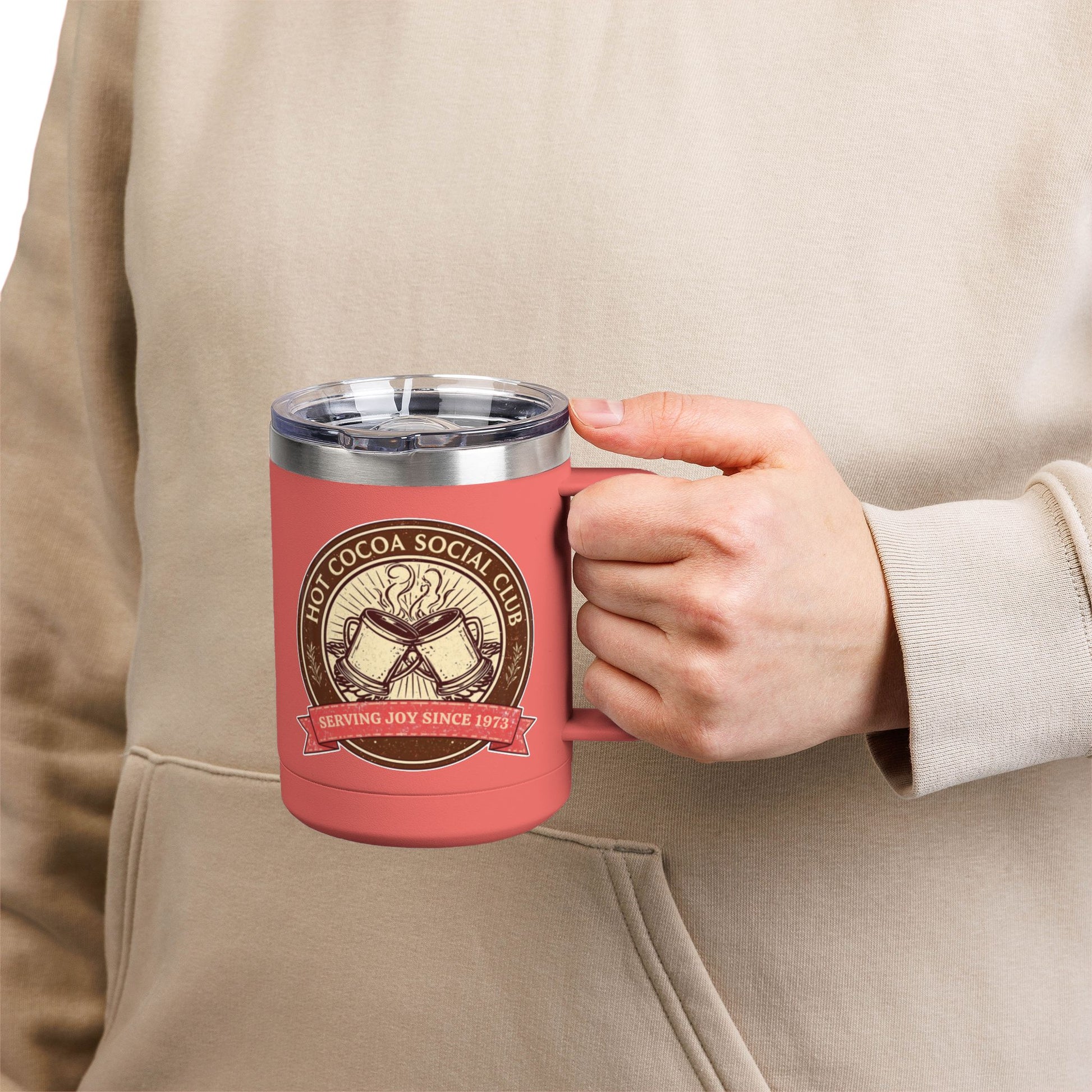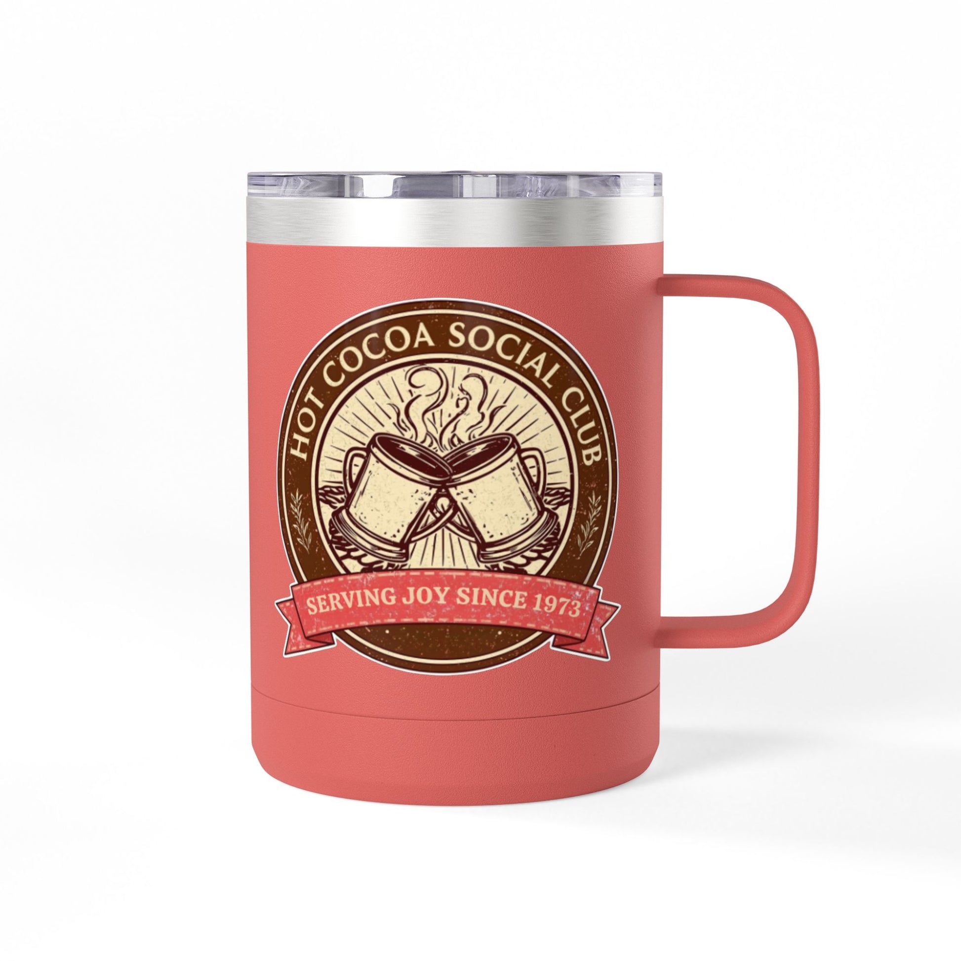Hot Cocoa Social Club Insulated Coffee Tumbler | Cozy Vintage Mug | Double-Wall Stainless Steel Holiday Drinkware