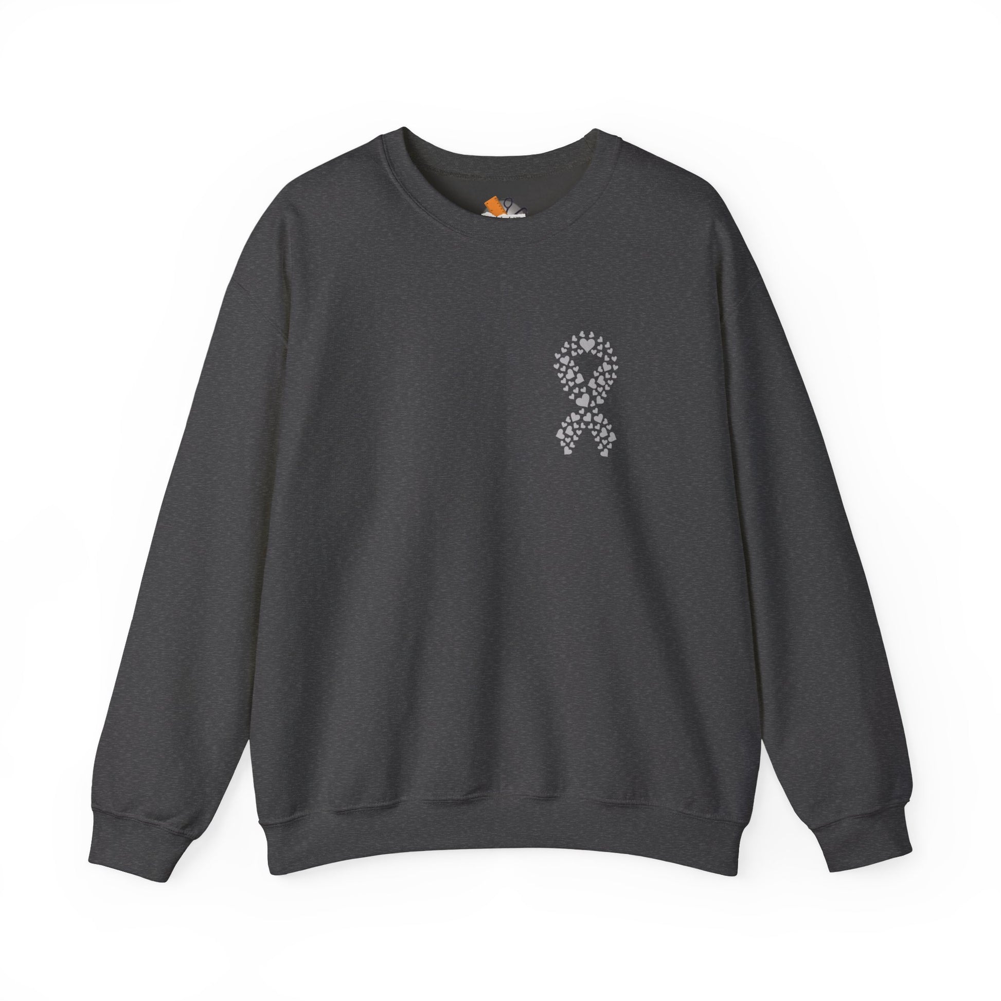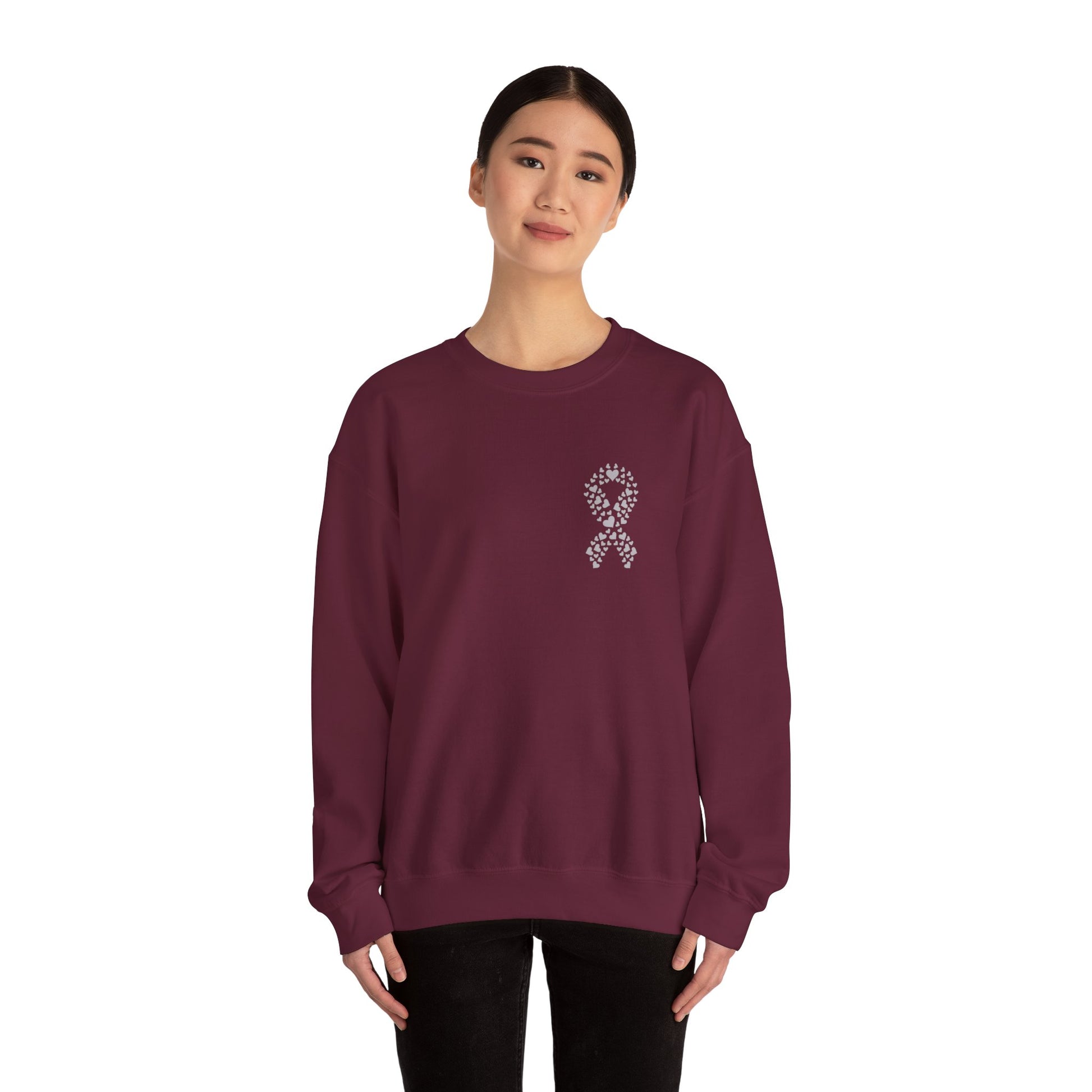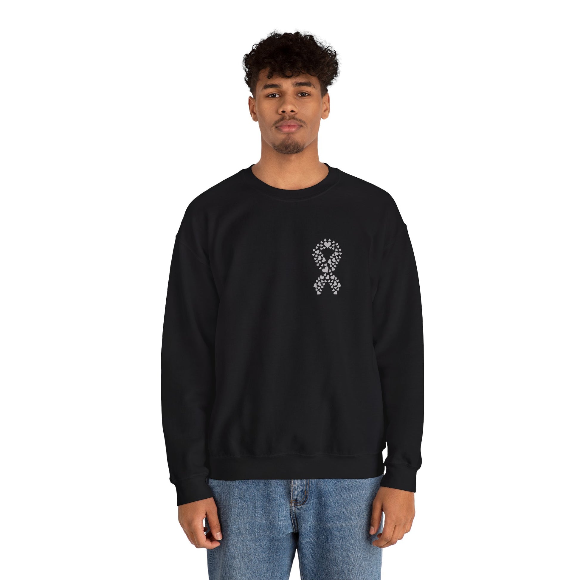 This minimalist design features a delicate heart-shaped awareness ribbon over the chest, symbolizing compassion, courage, and connection. Made from a soft cotton-blend fleece, this sweatshirt offers cozy warmth for everyday wear while helping raise awareness and spark conversation.