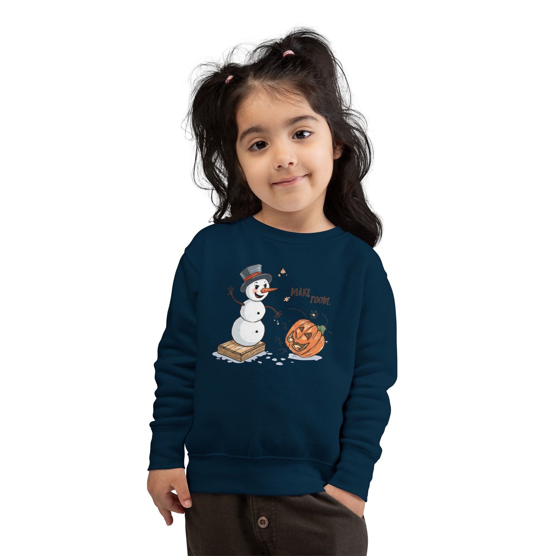 Bring the giggles straight into sweater season with our “Make Room” Fall-to-Winter Toddler Sweatshirt — a playful reminder that once the snowman shows up, pumpkin season steps aside! Designed for kids who love silly characters and parents who adore a little seasonal humor, this cozy crewneck blends comfort, warmth, and personality in one adorable piece.