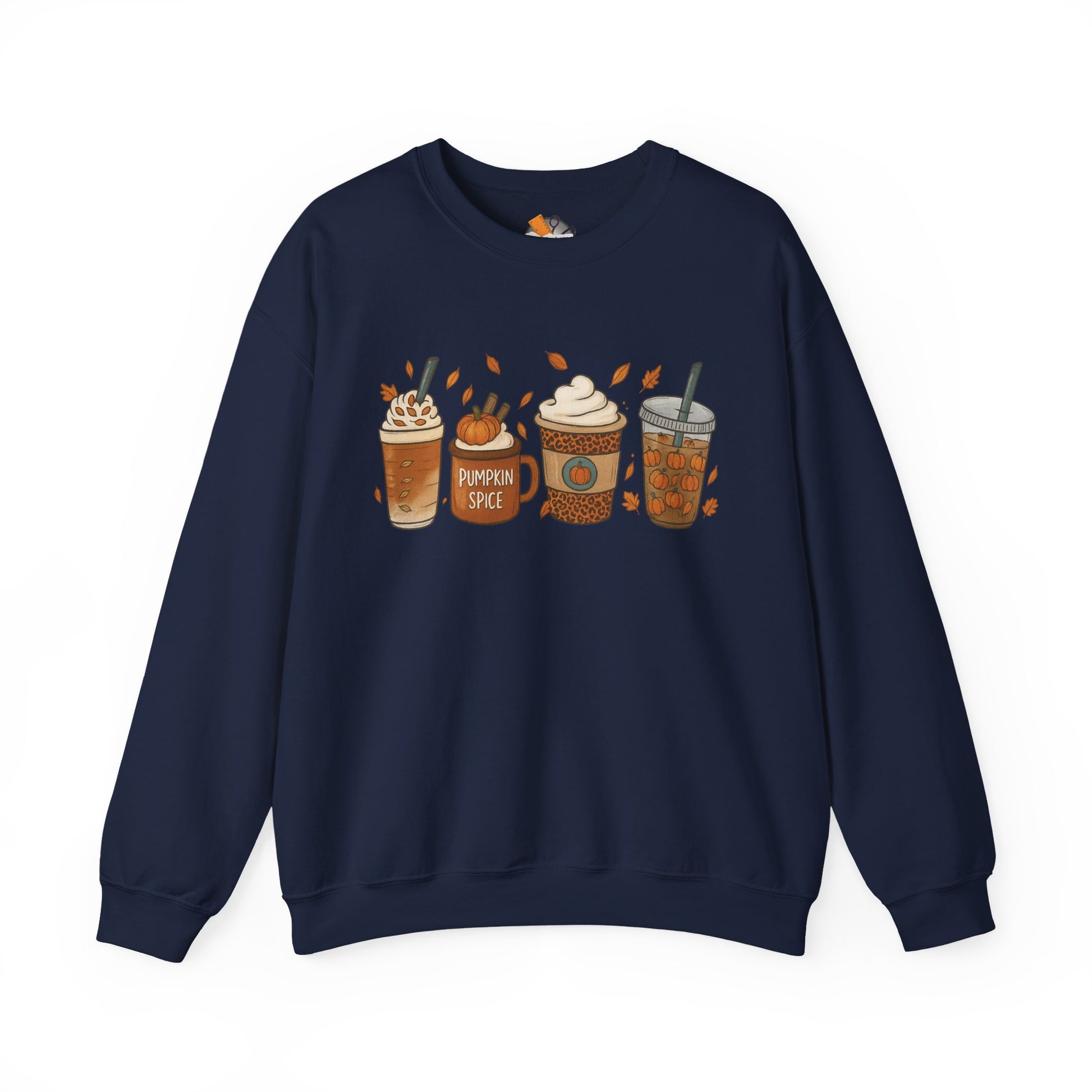Pumpkin Spice Crewneck Sweatshirt – Cozy Fall Coffee Lover Pullover (10 Colors)
